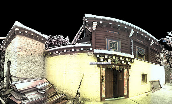 項(xiàng)目由四川省某大學(xué)負(fù)責(zé)實(shí)施,主要內(nèi)容為藏族民居研究,并對(duì)對(duì)象建筑進(jìn)行掃描存檔。項(xiàng)目初期利用思拓力X300型三維激光掃描儀對(duì)對(duì)象建筑進(jìn)行實(shí)地全方位掃描,要求掃描數(shù)據(jù)內(nèi)業(yè)可量測(cè)、判讀,三維模型數(shù)據(jù)按照1:1比例制作。