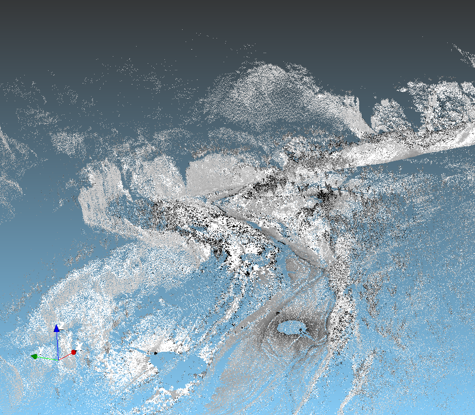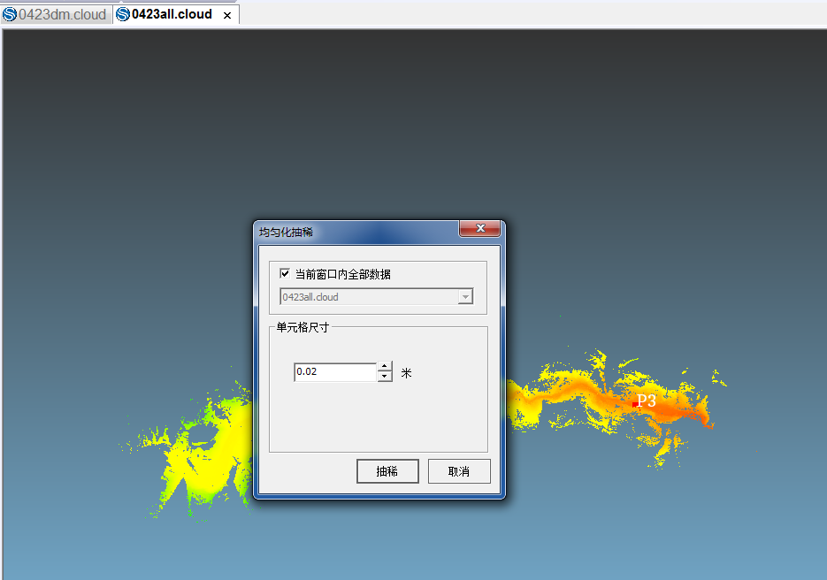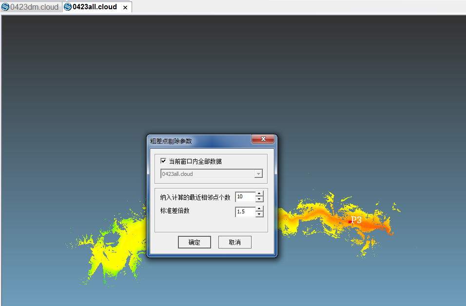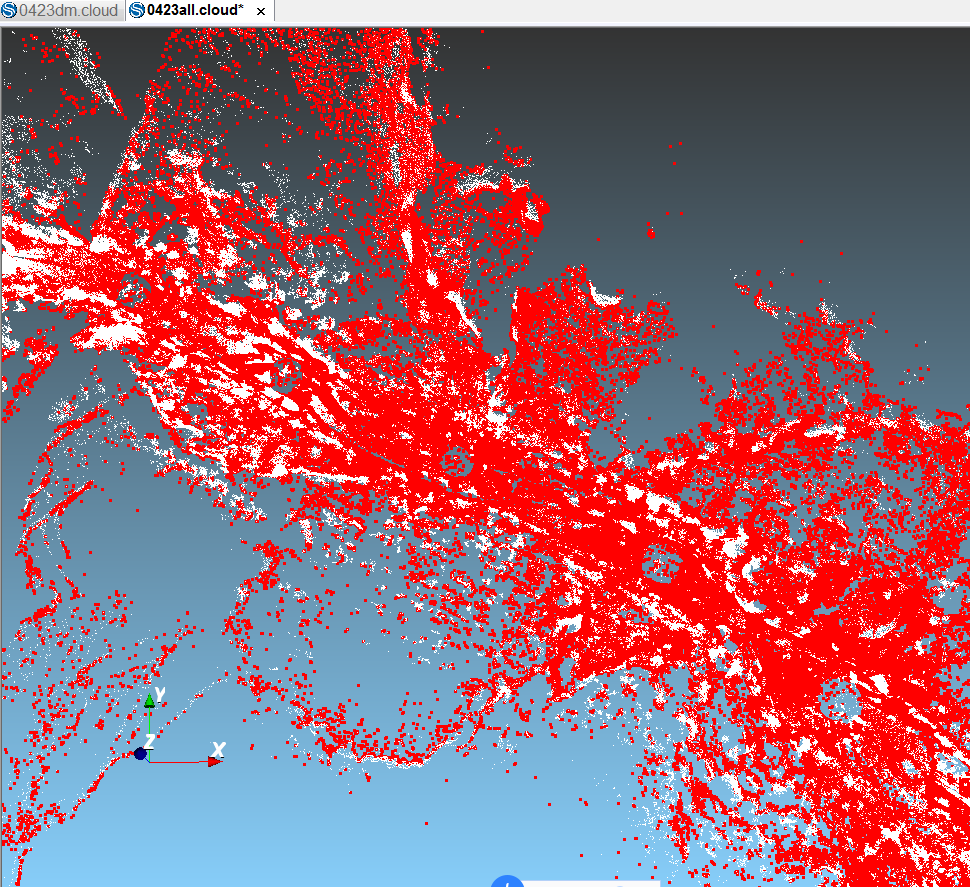 分類后點云數(shù)據(jù),紅色為地面點,白色為噪聲點