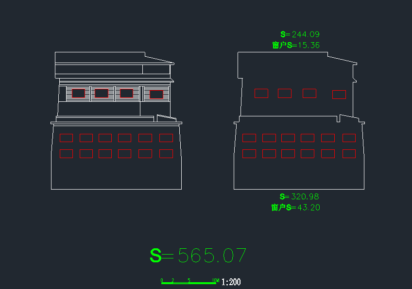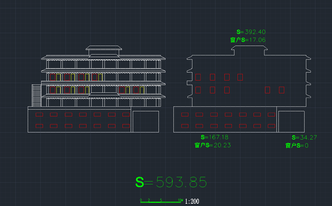 對其建筑立面的總面積和窗戶的面積進行統(tǒng)計,為后期的設(shè)計方案和造價提供真實可靠的依據(jù)