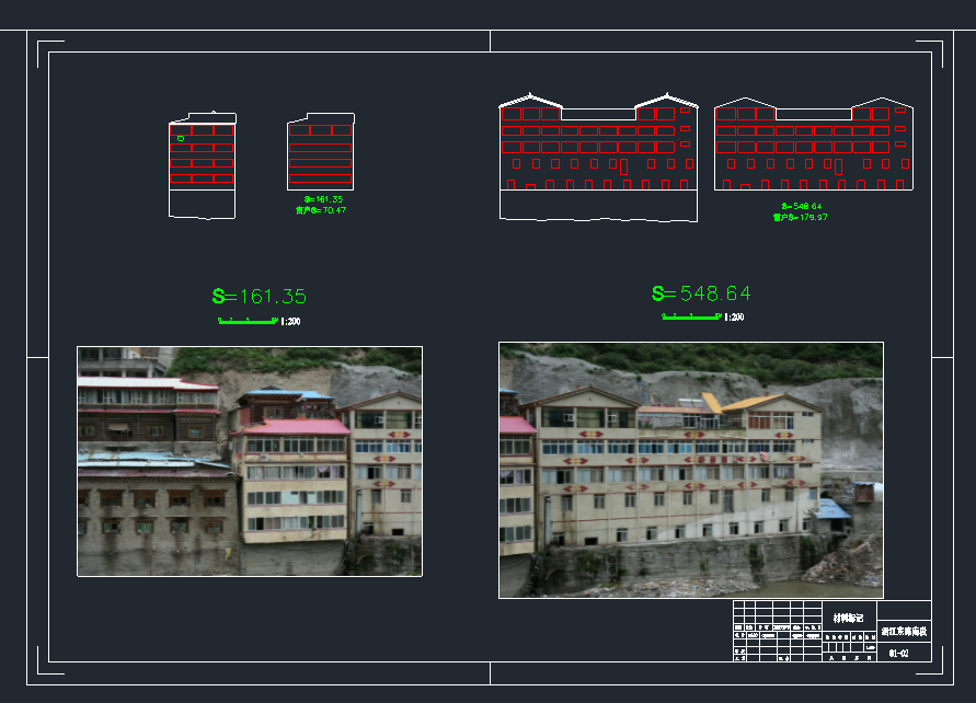對應(yīng)左側(cè):第一棟臨江建筑立面圖