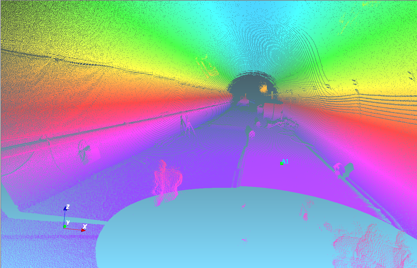 在隧道開挖面或一襯或二襯之后進(jìn)行現(xiàn)場(chǎng)數(shù)據(jù)采集工作,單站有效數(shù)據(jù)可達(dá)半徑40米左右。與傳統(tǒng)的作業(yè)方式相比,減少了數(shù)據(jù)采集的時(shí)間,增加了數(shù)據(jù)采集量,為后期的隧道超欠挖分析提供了大量真實(shí)有效的點(diǎn)云數(shù)據(jù)。