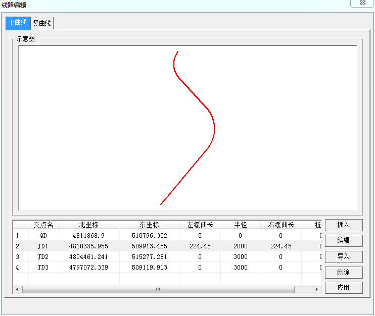 對(duì)導(dǎo)入的數(shù)據(jù)進(jìn)行檢查后,對(duì)隧道超欠挖分析所用到的設(shè)計(jì)路線(平曲線、豎曲線)、設(shè)計(jì)斷面等數(shù)據(jù)(有客戶提供隧道的設(shè)計(jì)參數(shù))進(jìn)行輸入轉(zhuǎn)換,如下: