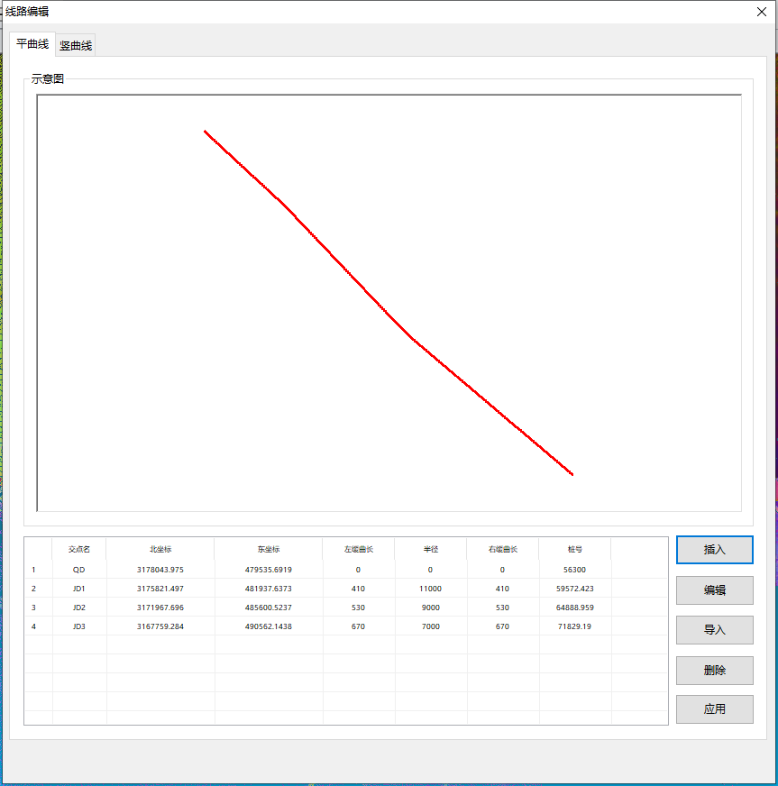隧道線路編輯器(平曲線=豎曲線)根據(jù)平曲線要素表進(jìn)行轉(zhuǎn)換