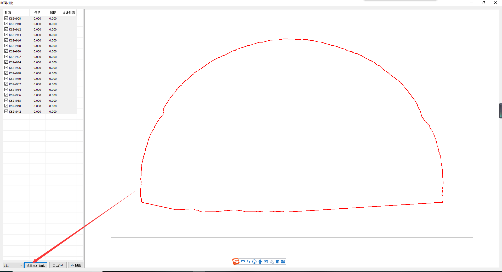 檢查導(dǎo)入的數(shù)據(jù),然后對隧道超欠挖分析用到的設(shè)計路線(平曲線、豎曲線),設(shè)計斷面等數(shù)據(jù)(由客戶提供隧道設(shè)計參數(shù))進(jìn)行輸入轉(zhuǎn)換,如下: