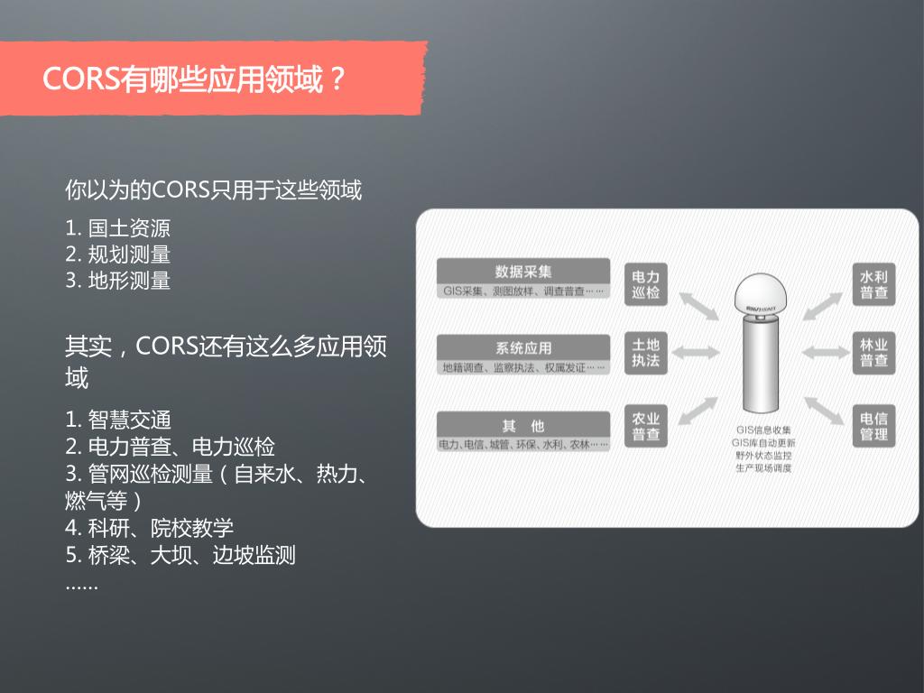 隨著現(xiàn)代測(cè)繪技術(shù)的發(fā)展,CORS在全球衛(wèi)星導(dǎo)航定位系統(tǒng)(GNSS)高精度領(lǐng)域的應(yīng)用早已不再是什么稀罕事兒,屬于測(cè)繪從業(yè)人員經(jīng)常念叨的高頻詞匯。既然CORS是測(cè)繪行業(yè)的“萬(wàn)人迷”,那么,這次小編就說(shuō)說(shuō)與CORS有關(guān)的內(nèi)容。PS:前方高能,有“重磅”PPT內(nèi)容,敬請(qǐng)耐心閱讀。
