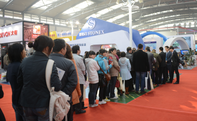 思拓力展位前排隊(duì)領(lǐng)取資料的人群