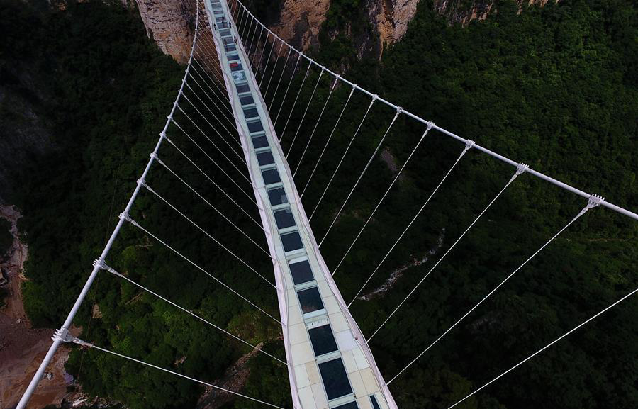 張家界大峽谷玻璃橋,是一座景觀橋梁,兼具景區(qū)行人通行、游覽、蹦極、溜索等功能。這將是世界首座斜拉式高山峽谷玻璃橋,并創(chuàng)下世界最高最長玻璃橋、首次使用新型復(fù)合材料建造橋梁等多項(xiàng)世界之最。▼