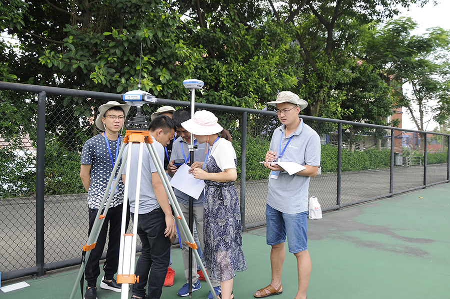 除了理論知識的學(xué)習(xí),還有動手操作的實踐。學(xué)員們頂著烈日,在校園里演練著靜態(tài)測量操作、RTK基本使用、CORS連接、管線探測等,畢竟“紙上得來終覺淺,絕知此事要躬行”。