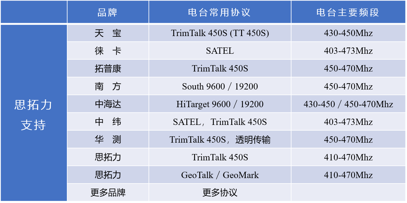 用戶在選擇RTK時(shí),時(shí)常會擔(dān)心新買設(shè)備與原有設(shè)備無法互通,也會擔(dān)心購買了思拓力RTK之后,與之前使用的其他品牌RTK不兼容,現(xiàn)在這一切都不再是問題,在電臺兼容性方面,思拓力用戶將不再會有后顧之憂。此乃RTK用戶的里程碑。