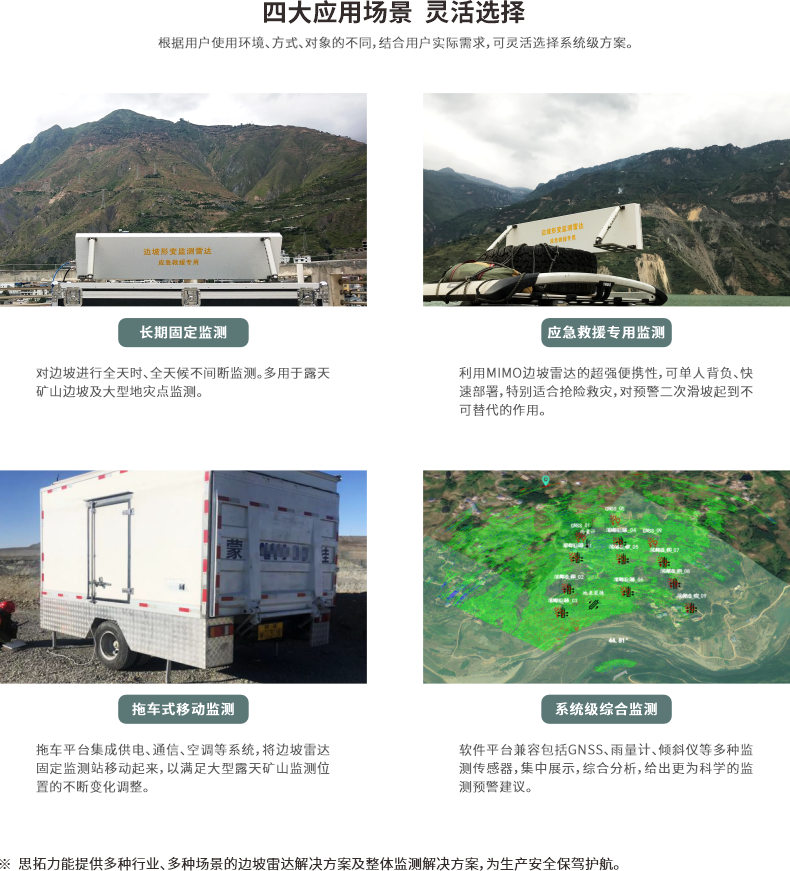 提供多種行業(yè)、多種場景的邊坡雷達解決方案及整體監(jiān)測解決方案,為邊坡安全保駕護航。