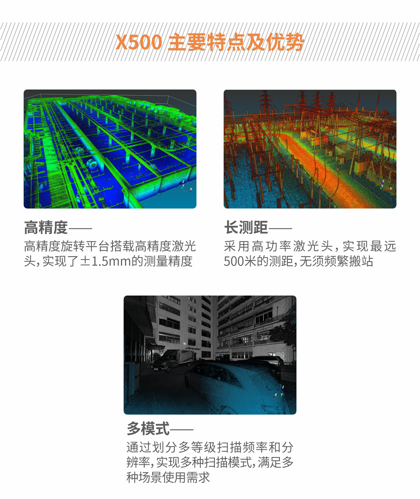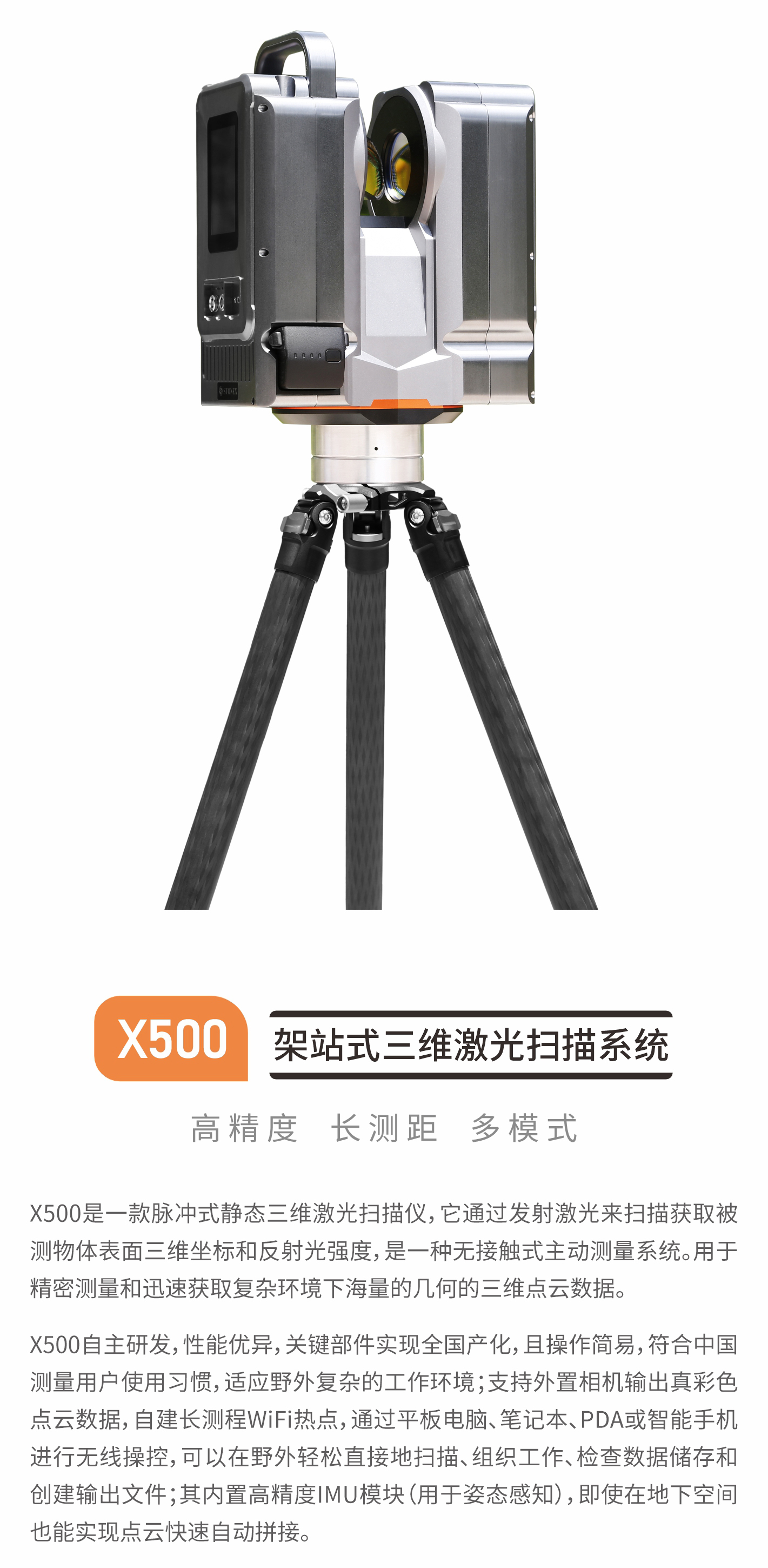 X500是一款脈沖式靜態(tài)三維激光掃描儀,它通過發(fā)射激光來掃描獲取被測(cè)物體表面三維坐標(biāo)和反射光強(qiáng)度,是一種無接觸式主動(dòng)測(cè)量系統(tǒng)。用于精密測(cè)量和迅速獲取復(fù)雜環(huán)境下海量的幾何的三維點(diǎn)云數(shù)據(jù)。